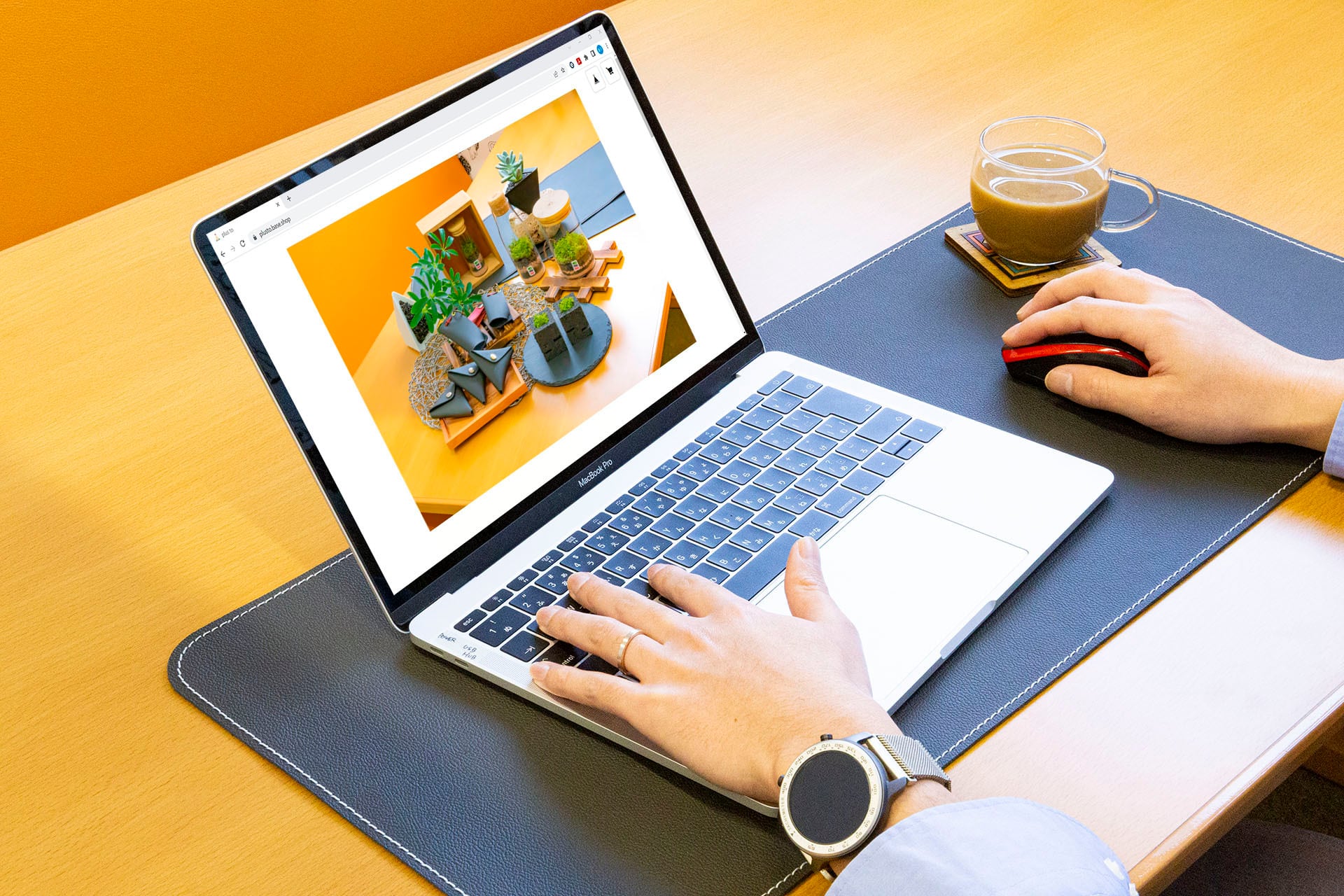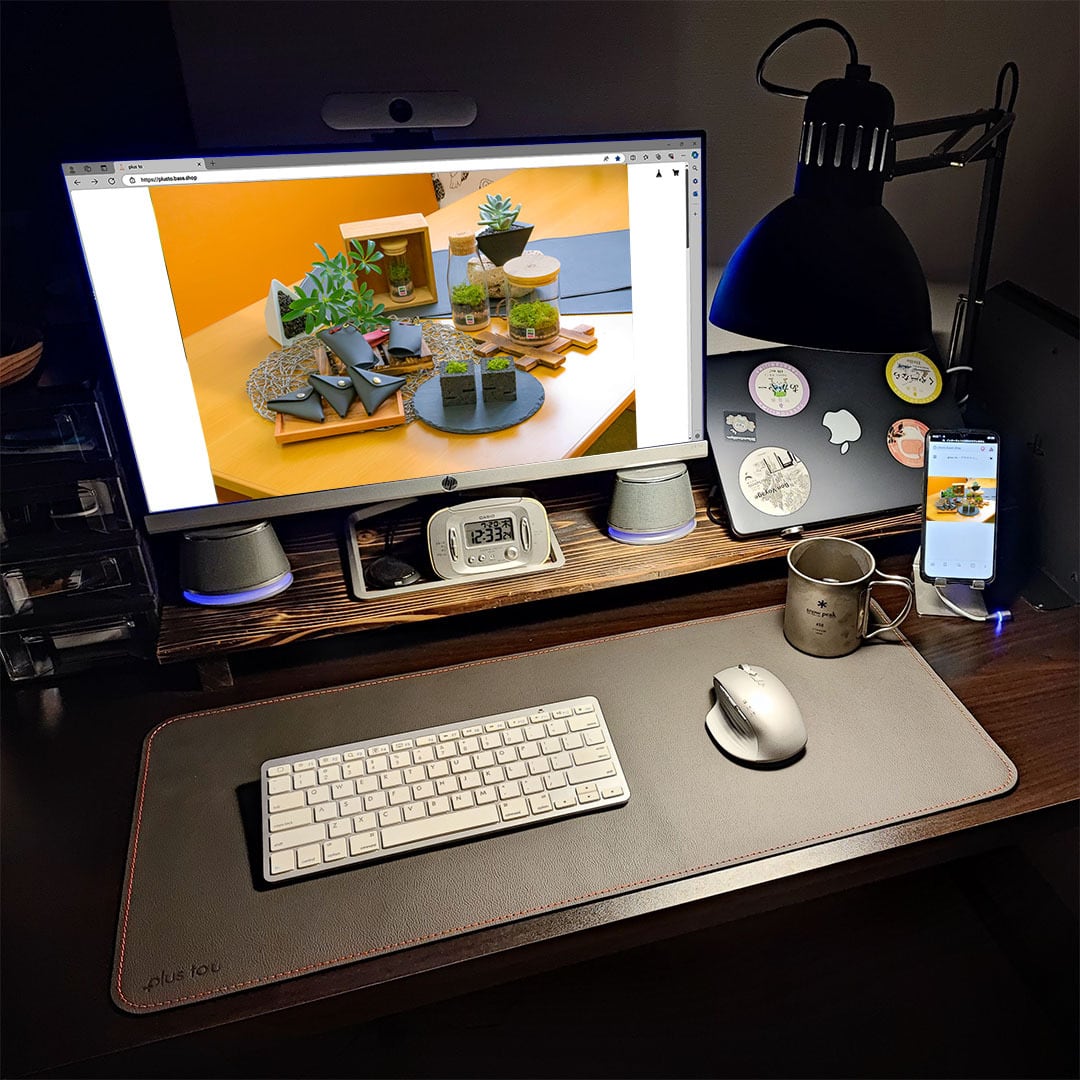 大胆に切り出した本革が、サスティナブルにデスクトップを彩ります!