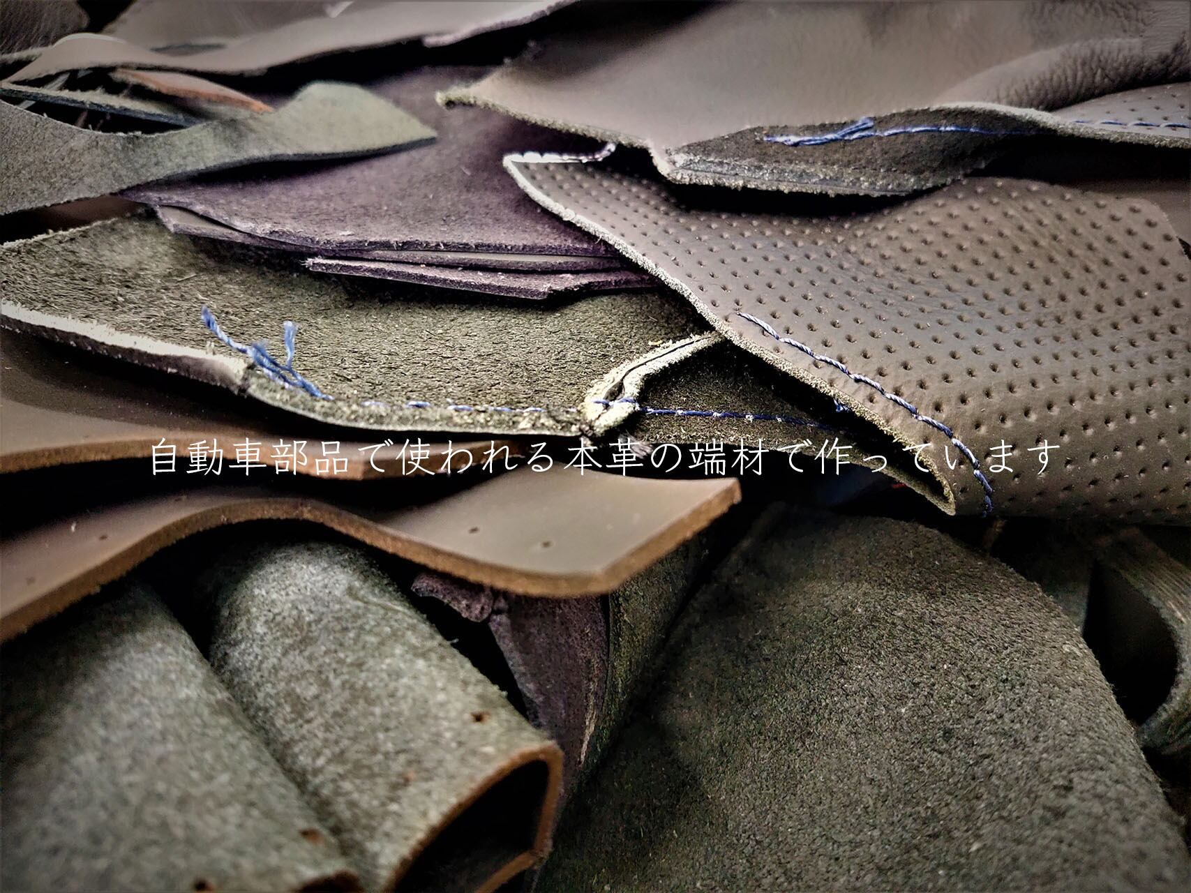 このデスクマットは、自動車用の革巻きハンドルなどに使用される本革を再利用して作った、アップサイクル商品です。